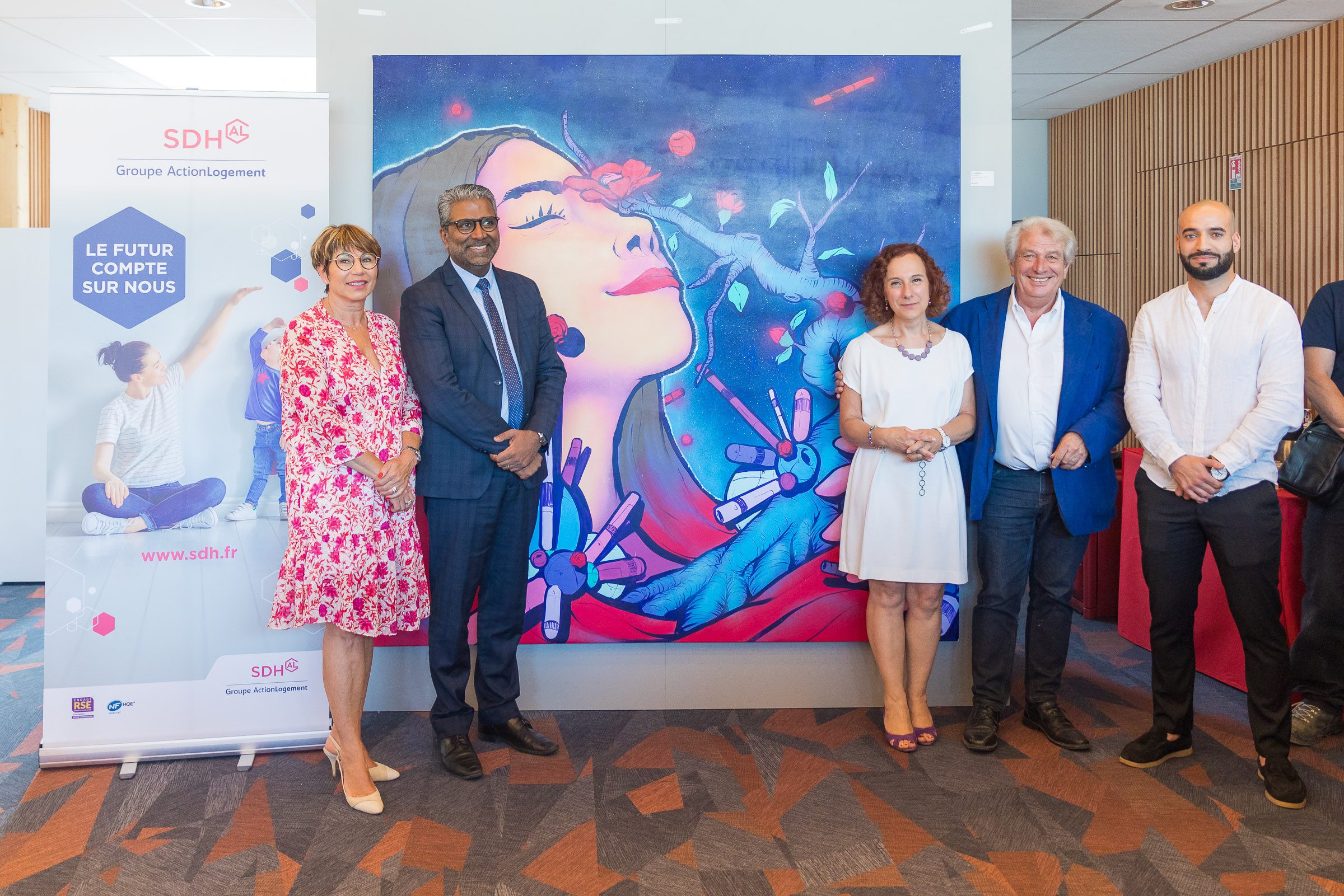 Lors de l’inauguration du nouveau bâtiment, j’ai eu l’honneur de présenter mon œuvre intitulée « Passerelle » et c’est pour moi un privilège d’avoir l’une de mes toiles exposées dans ces nouveaux locaux de la SDH à Echirolles.